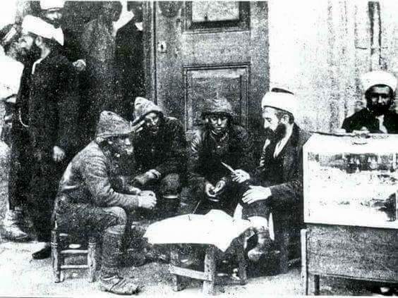 Seorang Tabur-İmam atau semisal Da’i-Batalion sedang memberikan wejangan kepada beberapa pasukan kekhilafahan Turki Utsmani yang baru pulang dari front Çanakkale, 1915, AND. Mereka menyaksikan bagaimana rekan-rekannya telah mendahului sebagai syuhada, kini mereka menunggu-nunggu giliran untuk disapa para malaikat dengan “inilah harimu (berbahagia) yang telah dijanjikan kepadamu.”